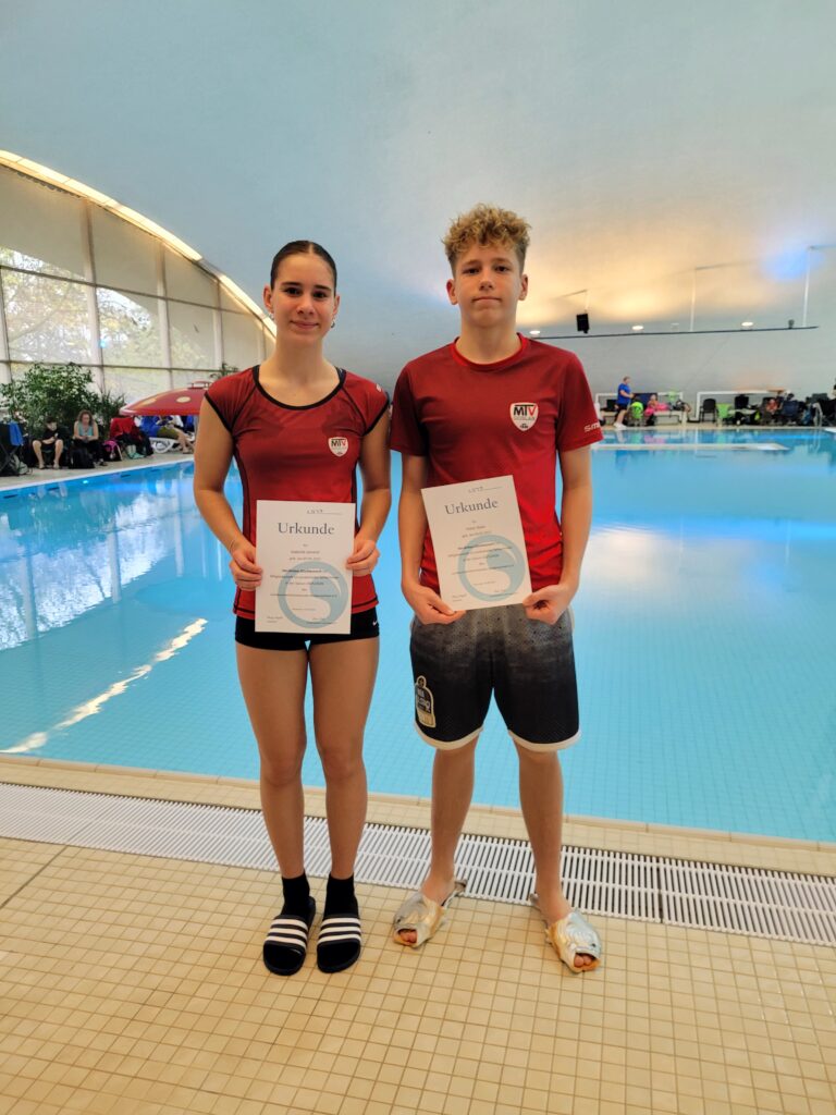 Fast 40km im Wasser und dazu noch Landtraining – auch so kann man seine Zeugnisferien verbringen. Beim Ausdauerlehrgang der Schwimmer in Hannover wurde den niedersächsischen Kaderathleten Einiges abverlangt. Geladen waren auch die MTV-Talente Isabella Janitzki und Yehor Byba (beide Jahrgang 2012). „Man ist dann so richtig im Flow“, beschreibt Isabella das Training. „Bei Serien wie 35x100m oder 10x300m findet man seinen Rhythmus und schwimmt dann fast wie automatisch. Man gewöhnt sich einfach dran und lernt, sich auch noch auf die Aufgaben zu konzentrieren, die dabei gestellt werden: Mal nur mit den Armen, dann nur mit den Beinen, mit technischen und koordinativen Übungen gespickt, mal mit Flossen, Schnorchel oder Paddles.“ Was erstmal eintönig klingt, wird dann doch wieder abwechslungsreich.